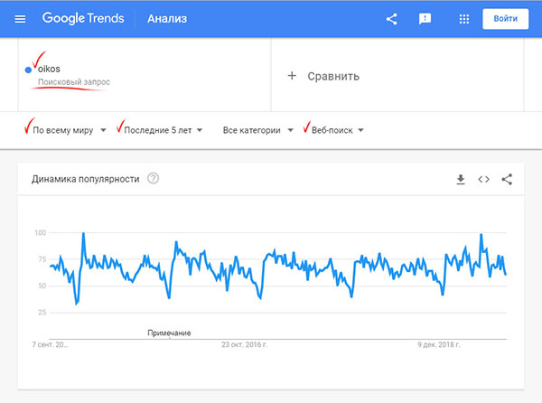 В течение 5 лет популярность компании OIKOS в мире находится на стабильно высоком уровне, согласно статистике GOOGLE TREND